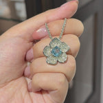DIAMOND PAVÉ FLOWER NECKLACE WITH BLUE TOPAZ IN 14K WHITE GOLD