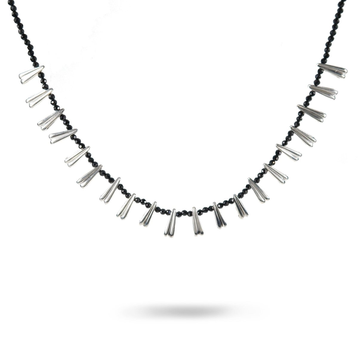 PETAL BEAD WITH BLACK SPINEL IN STERLING SILVER - NECKLACES